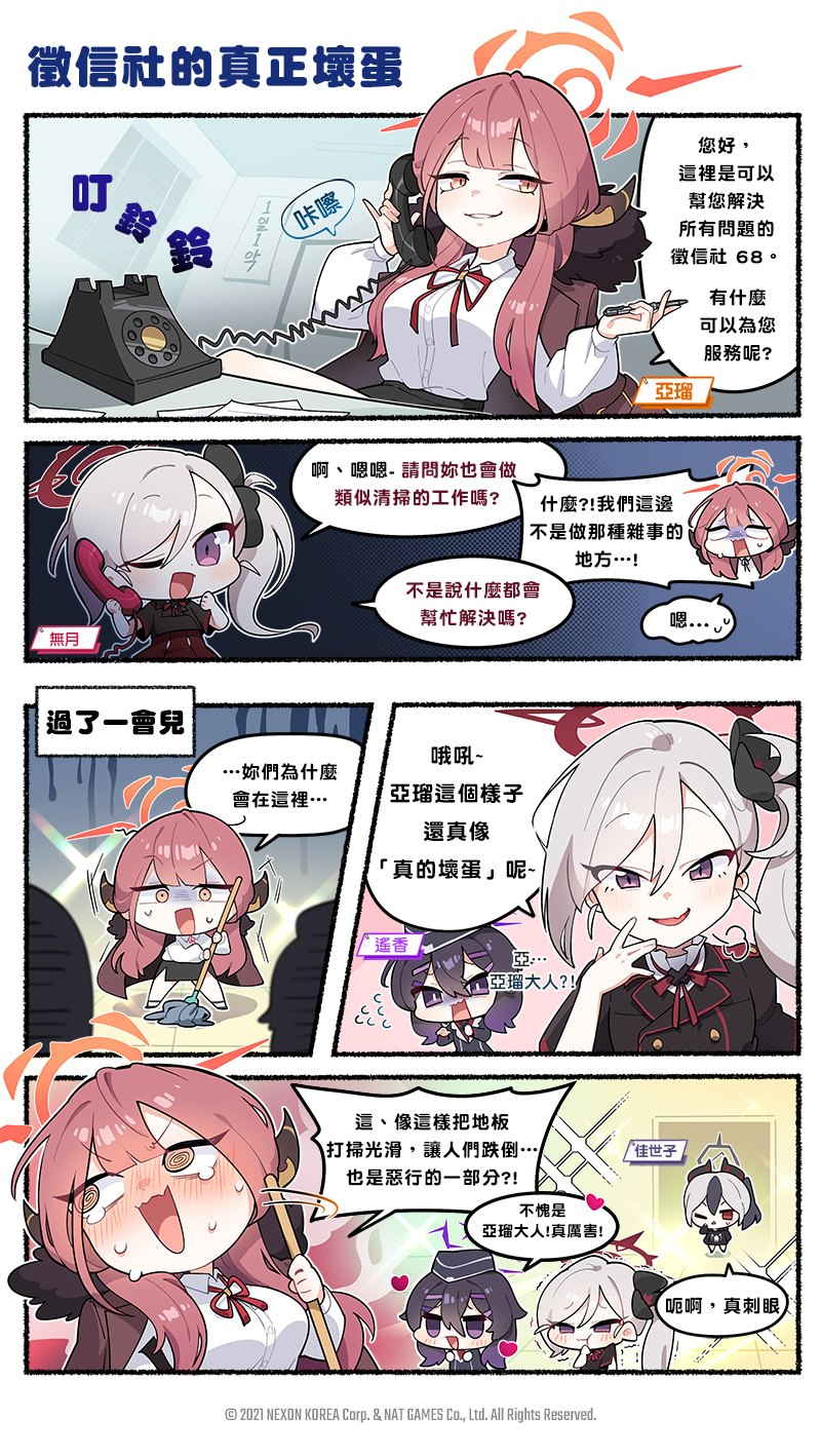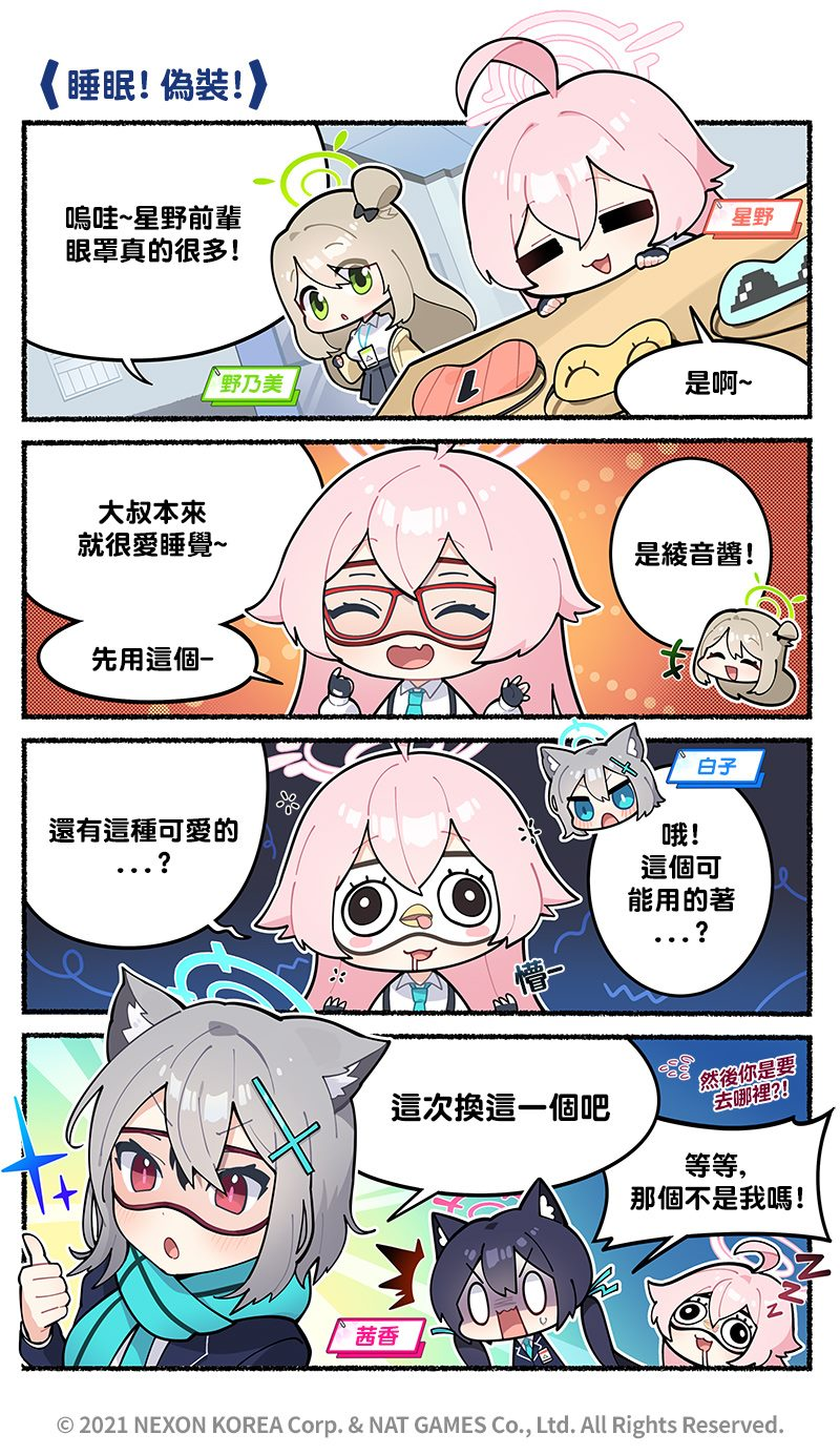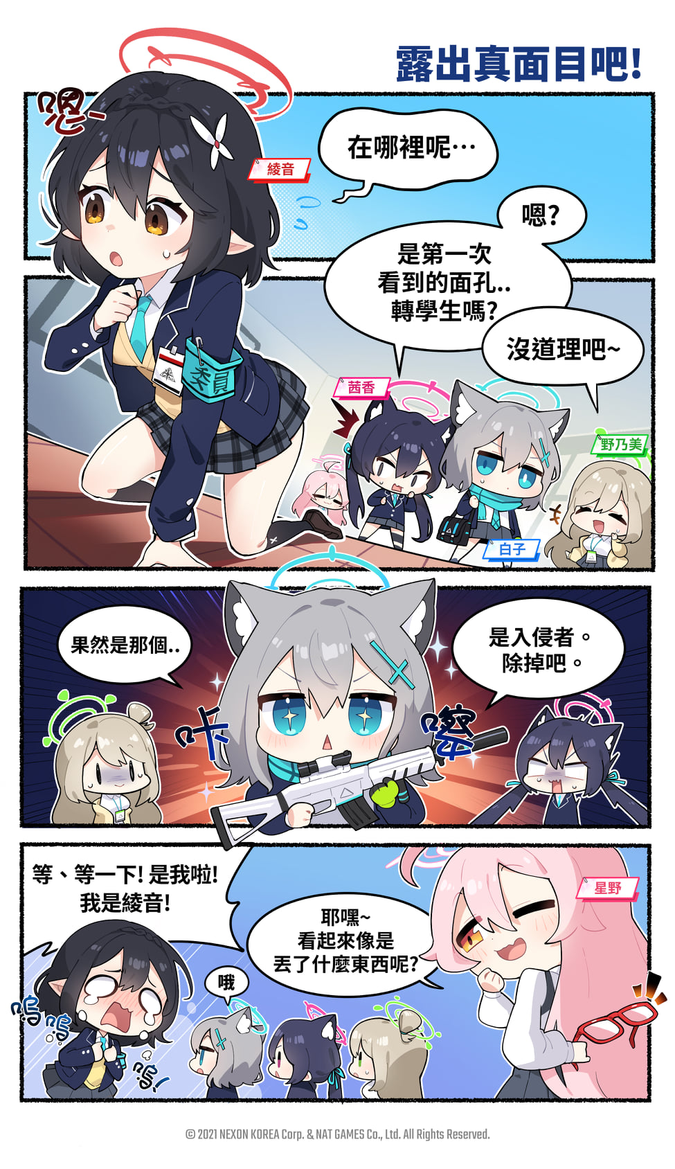 绪山七寻 蔚蓝档案 官方四格漫画 1-5 话 来源: 第一话(露出真面目吧!):https://www.facebook.com/TW.BlueArchive/posts/pfbid0DmihkTzjoPadqMa5GaC4LQmDriuTvrRZa2x2v8Dh3XoJxHqQjr8fpJvHMmf2QMWxl 第二话(便利屋的真正坏蛋):https://www.facebook.com/TW.BlueArchive/posts/pfbid0AuW581HkpoFisV8TgKHLBLKyzvXh978HoWvqMfKAerdh6bNqGXCktHN5C88gpRfyl 第三话(供给部的老主顾):https://www.facebook.com/TW.BlueArchive/posts/pfbid0587nXcVsoNL9hCSjw9z16EVtCfVjo5fFL6ZSLaGv1p8nNZVXH9owLWrj2zWNBPDol 第四话(女仆的任务):https://www.facebook.com/TW.BlueArchive/posts/pfbid02ugeN9xaFBTXjJbBfnQxFMcKK4ZQMJeg8CMufYsmrXuk4dxDvEDr3rpBHNJKDfRMal 第五话(睡眠!伪装!):https://www.facebook.com/TW.BlueArchive/posts/pfbid02e5Hz95TgqPU5cSNTQiL7ELCjUxsqFj4xteH1JsvdJ8W7LxUyRLnJNnFusLUxECssl