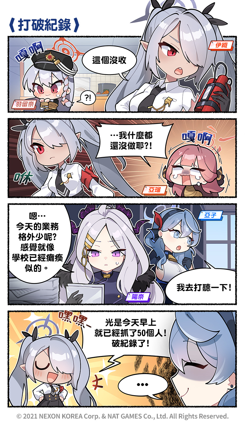 绪山七寻 蔚蓝档案 官方四格漫画 6-10 话 来源: 第六话(无法控制):https://www.facebook.com/TW.BlueArchive/posts/pfbid028DL8Ey7spk7ixJJc1vAdwctnJraa1FNowLbpnNCXassZR71R9be4P1w4mPxRK8rwl 第七话(打破纪录):https://www.facebook.com/TW.BlueArchive/posts/pfbid0znAjVbnYnCoUQv5pwAri93caho2ZfHiPt9Gotc31J2SY4qP1LmRetHAezdR4tsgYl 第八话(双面的门面):https://www.facebook.com/TW.BlueArchive/posts/pfbid02pimUWxjRqUntQ9UnA3NxA133oLsV2V7Srr2CeJyi9nwF2mPGBogtRtcSouU6FMR4l 第九话(试吃评价):https://www.facebook.com/TW.BlueArchive/posts/pfbid0234kTesg3fE91qSK5k2cWukrJTkAzq7coG3g6yugQiX3FbH6qKXod8AmGMuywViyDl 第十话(不行!爱丽丝! ):https://www.facebook.com/TW.BlueArchive/posts/pfbid0234kTesg3fE91qSK5k2cWukrJTkAzq7coG3g6yugQiX3FbH6qKXod8AmGMuywViyDl